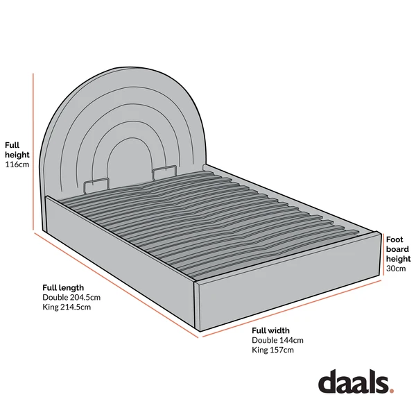 - Internal storage space (5FT King): W 152 x D 202 x H 22 cm