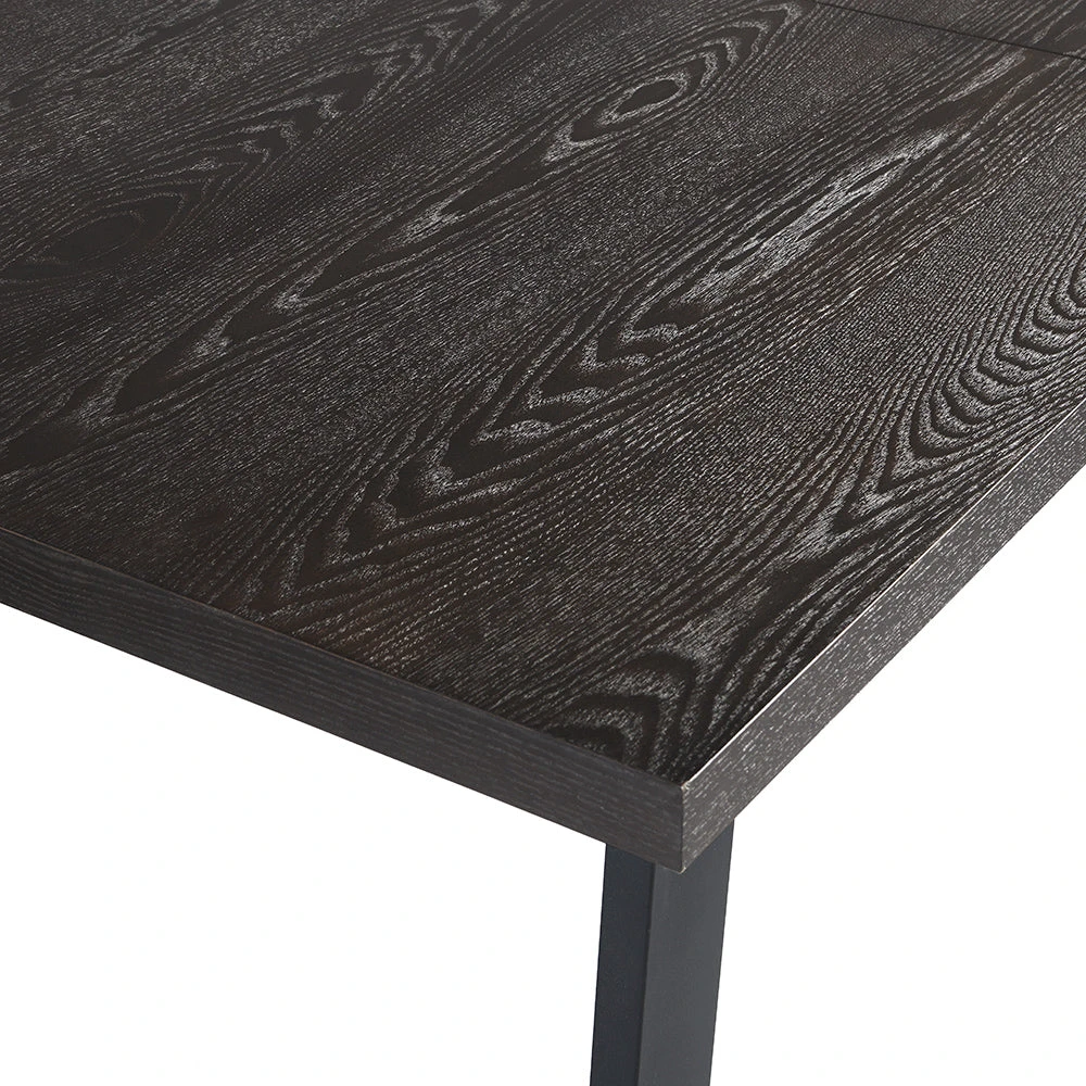 - The table top finishes with solid oak veneer in dark colour therefore each piece comes with unique natural pattern of wood grains and knots. 25 x 75 mm robust steel legs offers sturdy support of the generous sized table top.