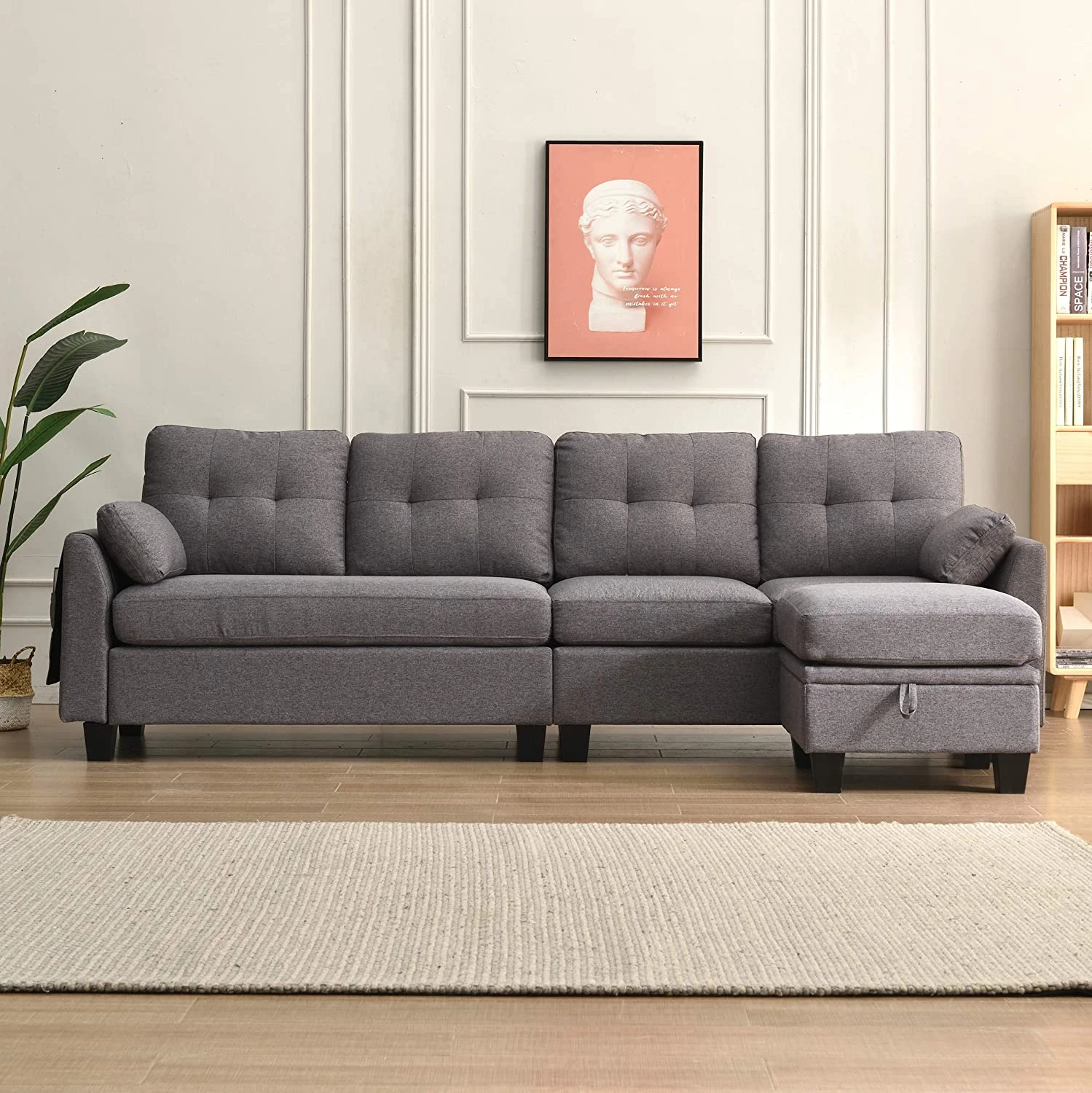 - Our stylish Brunswick sofa offers functionality and flexibility. With the chaise part detached, you can easily move it from one side to the other, turning the sofa into a LHF or RHF setting to suit your room arrangements. It can also be used as a ottoman or coffee table, thanks to the hidden storage design.