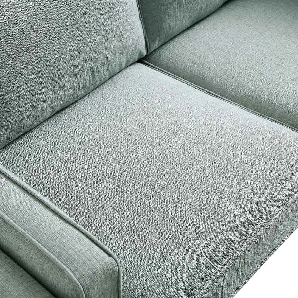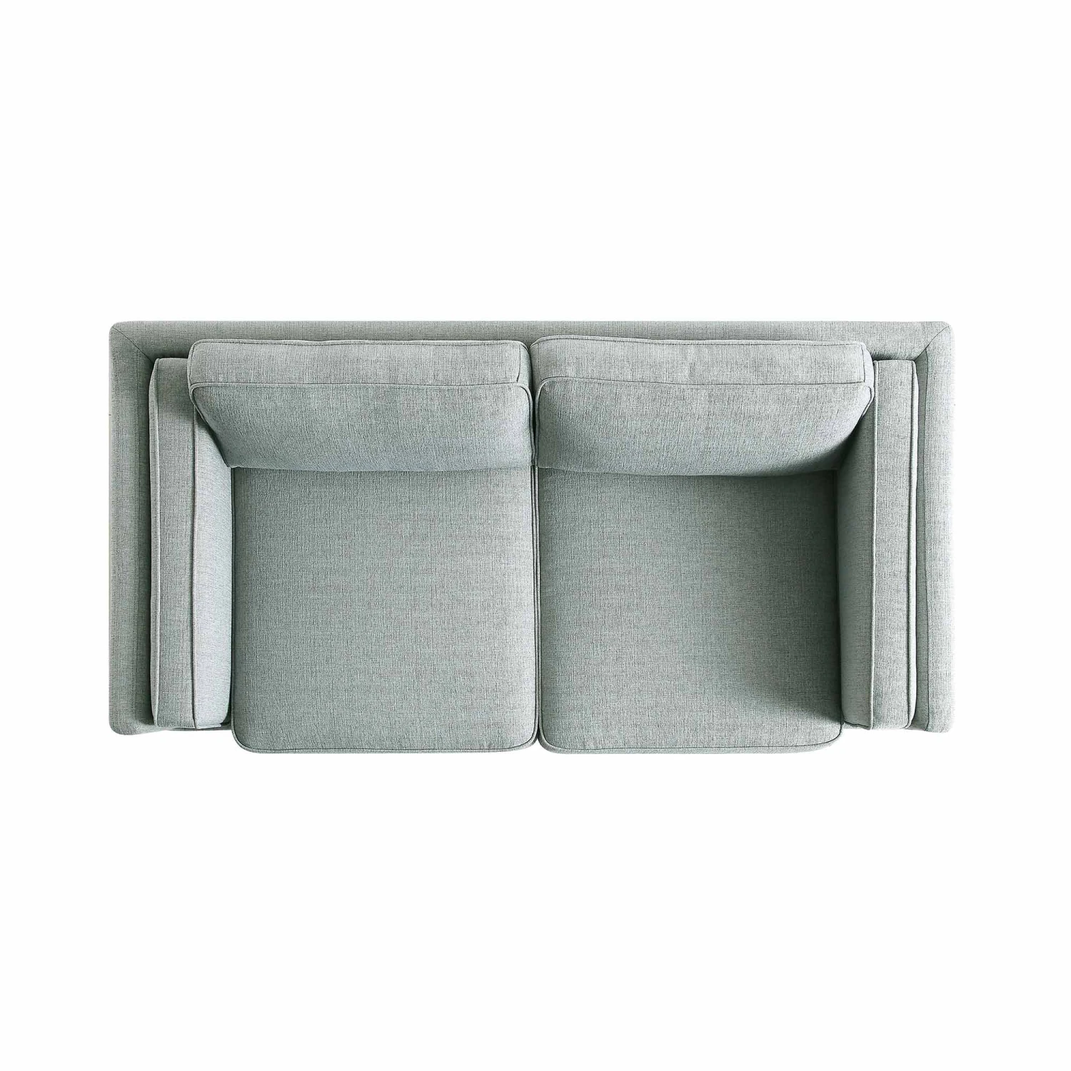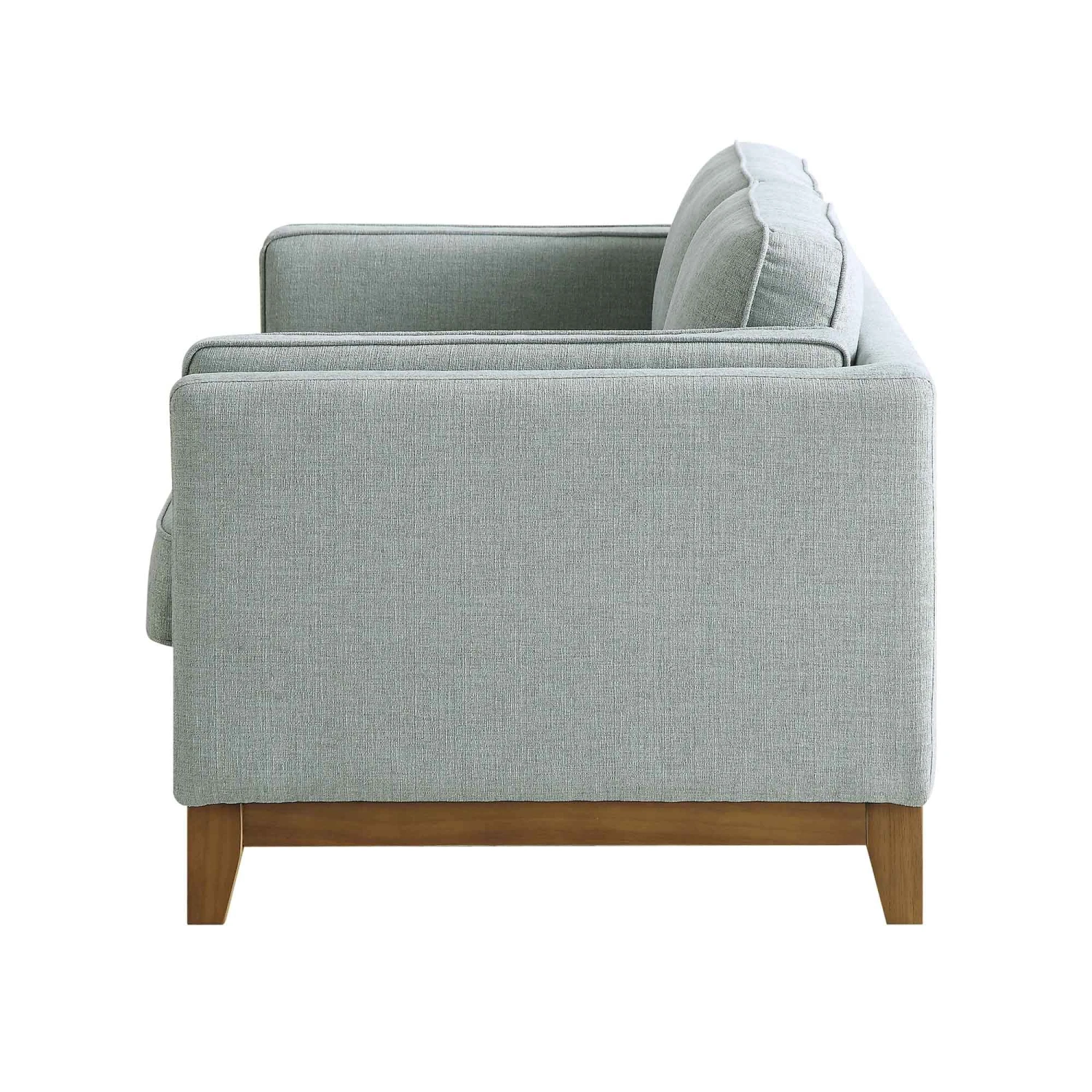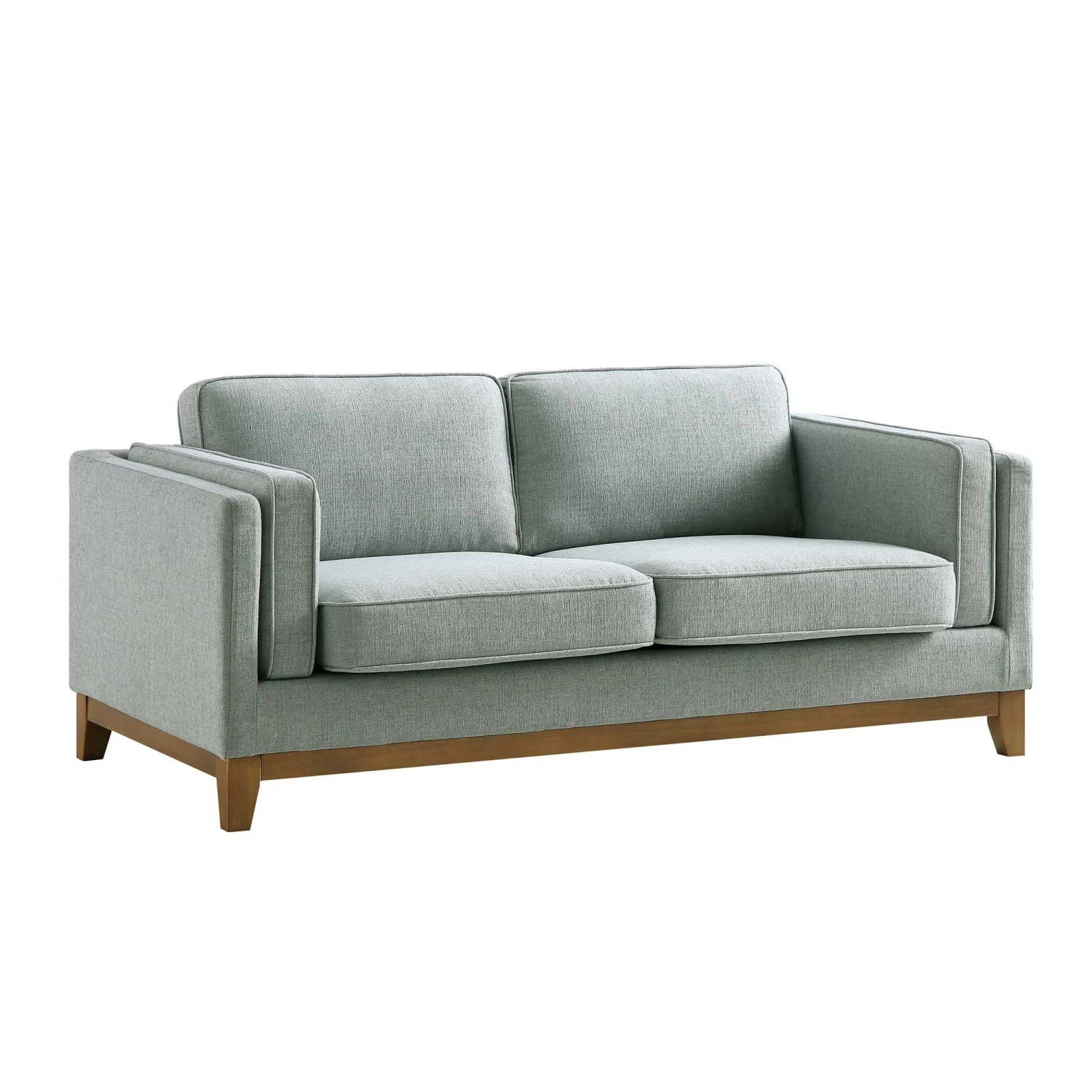 - Designed with track armrests and solid wood base, the sofa features seat cushions composed of springs and foam for a comfortable lounge place