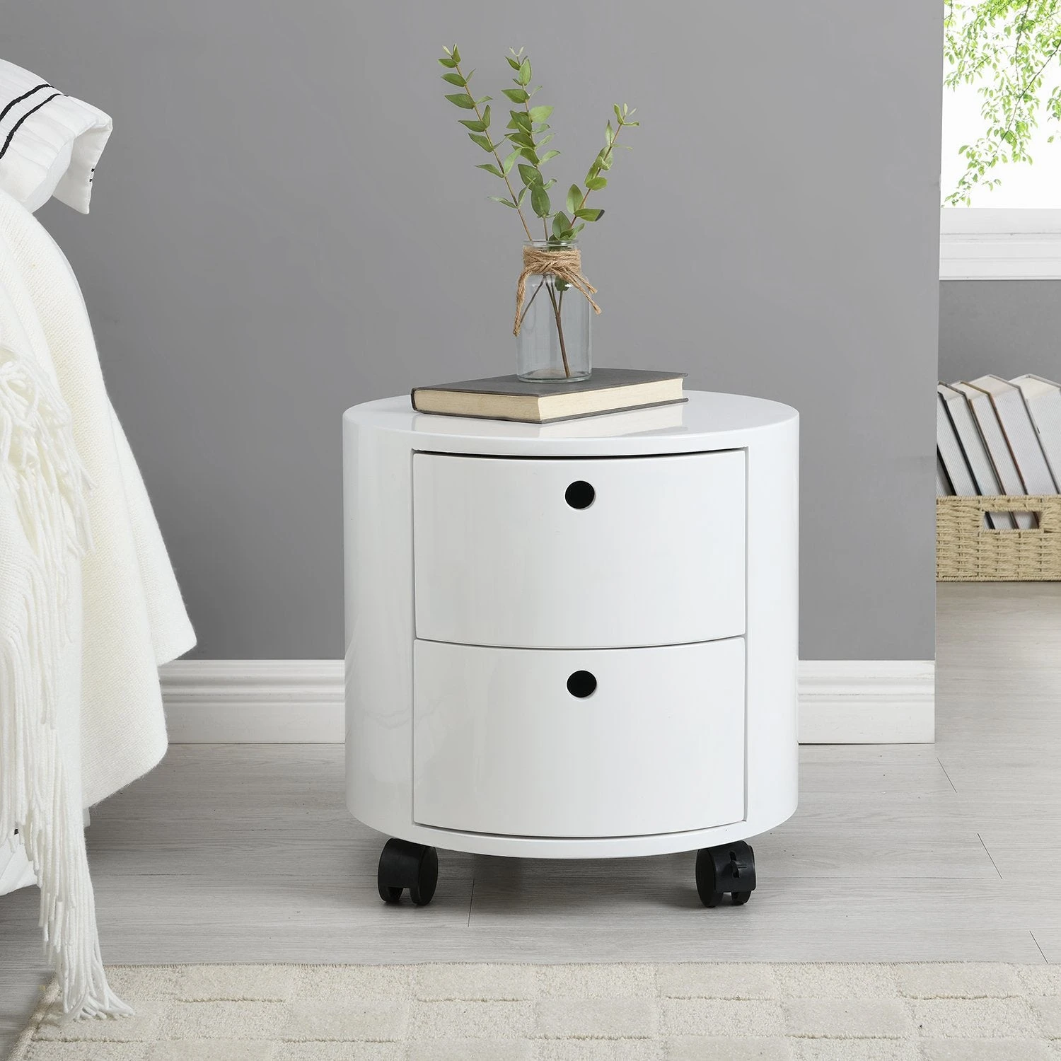 - The DOLIO barrel bedside tables are ideal for modern home dercor. The sleek and curved design with sliding drawers and easy-to-move rollers makes it perfect beside sofa or your bed.