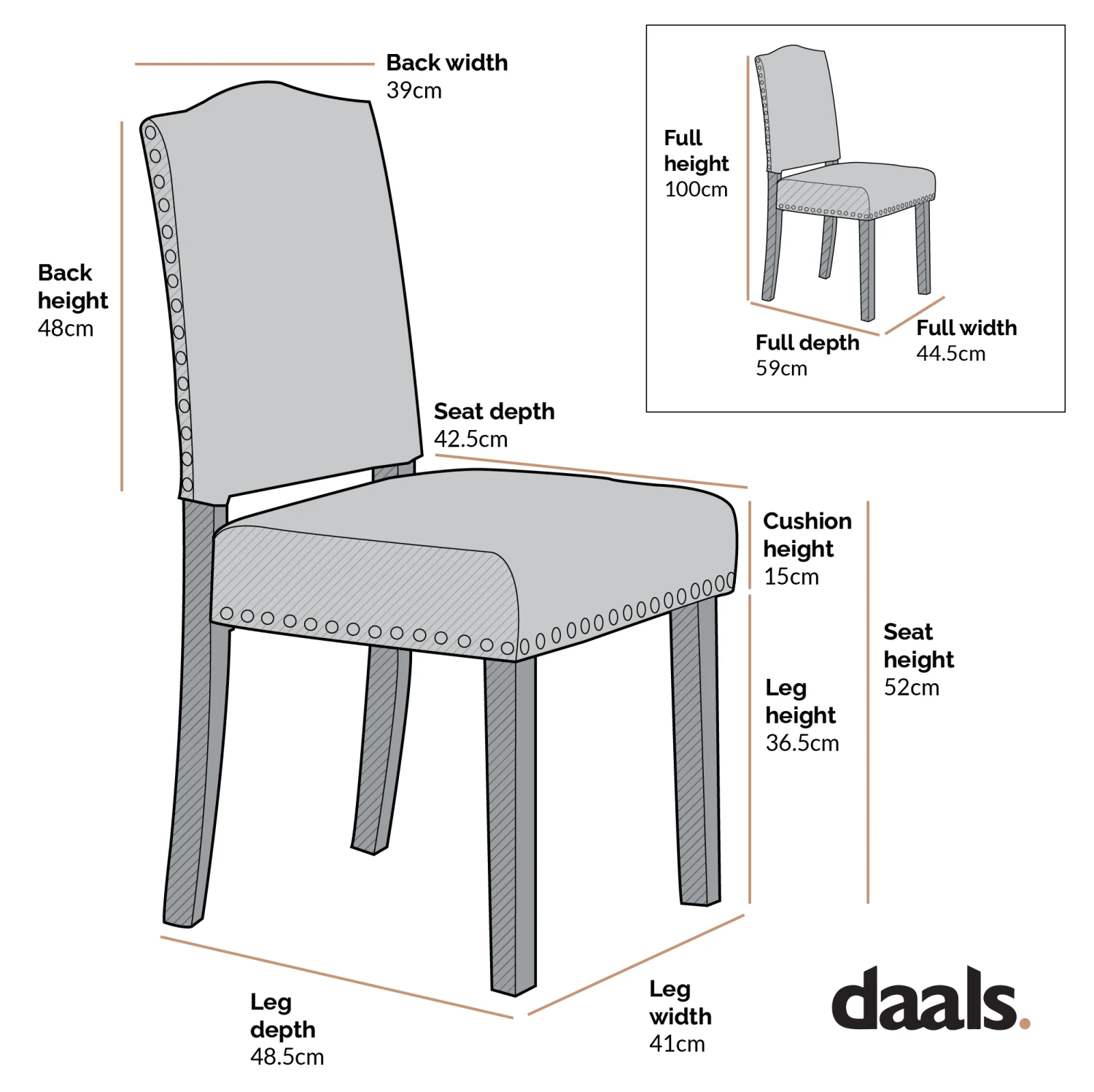 - Accented by retro brass nail trims, the chairs are padded with quality foam and completed with tapered solid wood legs for comfort as well as look.