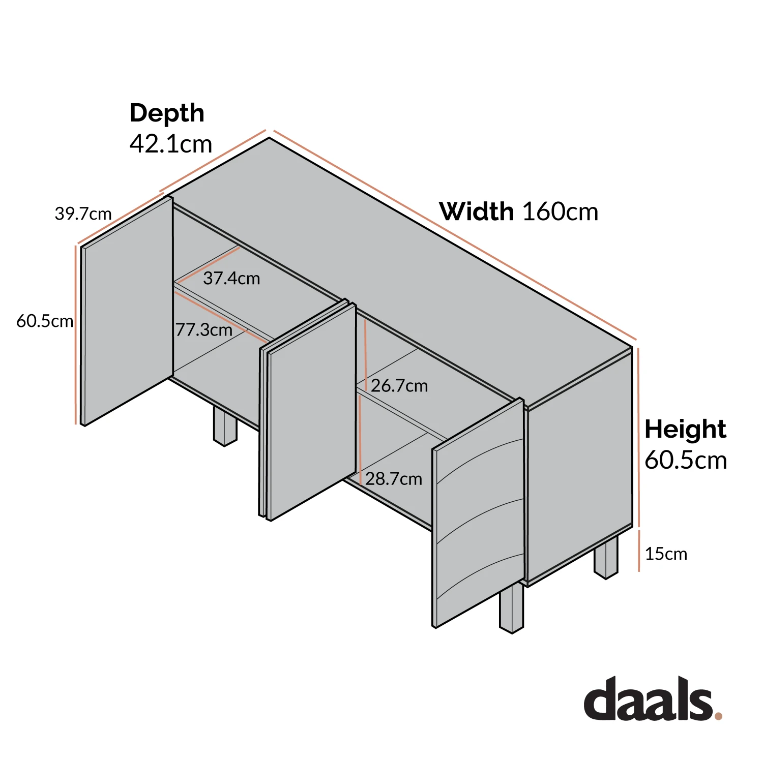 - Size: W 160 x D 42 x H 75.5 cm