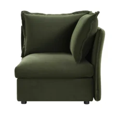 Byron Pillow Edge Moss Green Velvet Modular Sofa, 1 Seater Armless